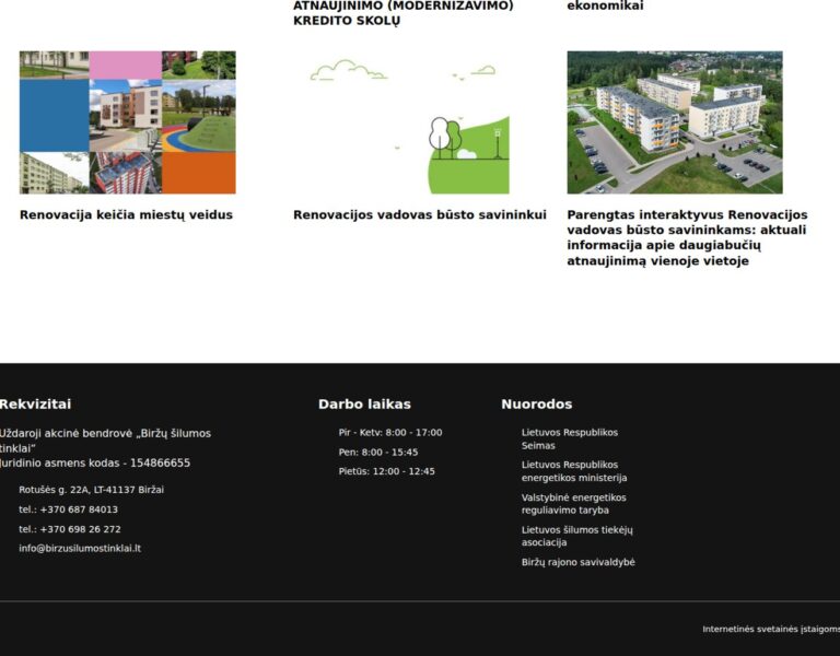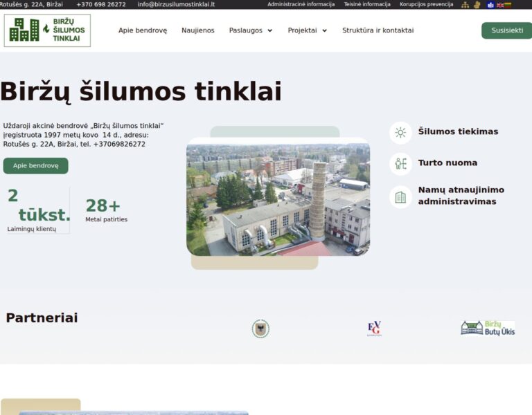 We designed and developed a modern website for Biržai District Heating Network to make essential service information easier to find and use. The platform supports residents and businesses with straightforward access to updates, contacts and key public utility information.