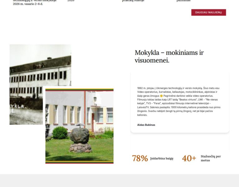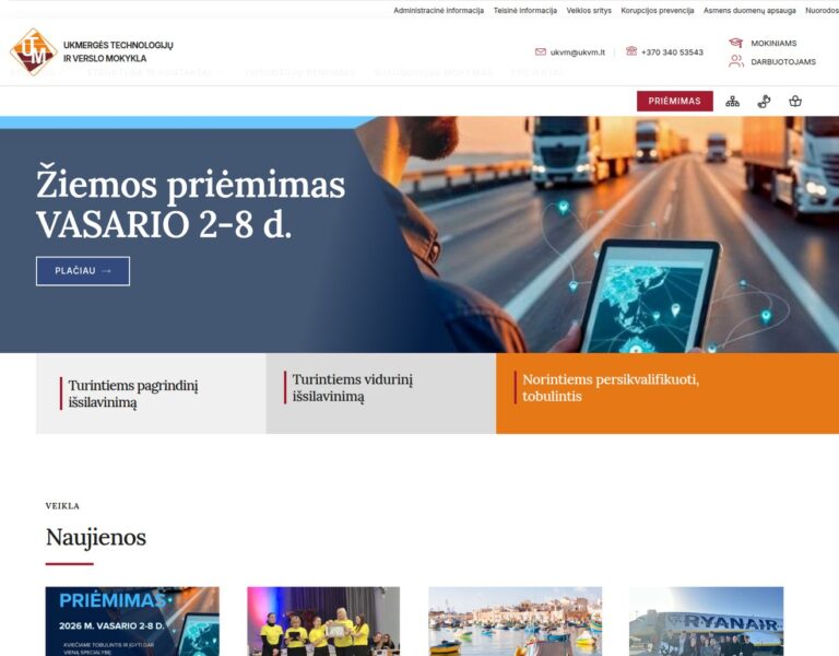 We created a modern website for Ukmergė Technology and Business School that presents its study programmes, school life and public information in a clear, accessible way. The platform helps prospective students, parents and local partners quickly understand what the school offers and how it supports career-focused education.