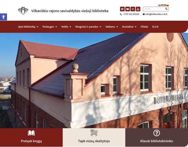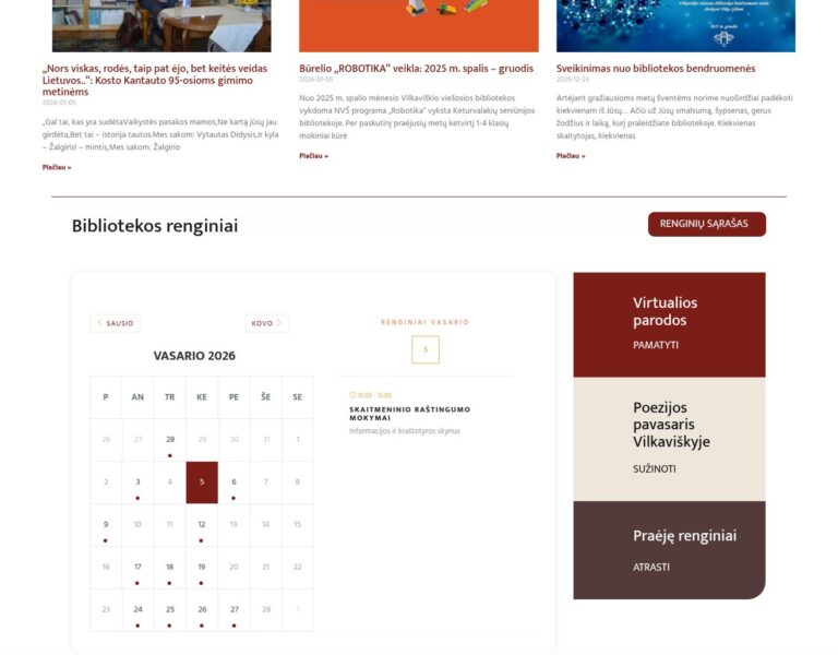 We designed and developed a new website for Vilkaviškis District Public Library to make information, services and cultural activities easier to access online. The platform gives residents a clearer, more user-friendly way to engage with the library and its resources.